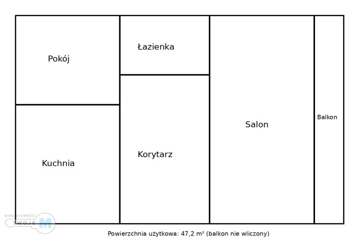 Lokal jest dwustronny, co zapewnia doskonałe doświetlenie przez cały dzień. Składa się z dwóch ustawnych pokoi, osobnej kuchni, łazienki oraz przedpokoju. Dodatkowym atutem jest duży balkon, idealny do stworzenia przytulnej strefy relaksu według własnego pomysłu.