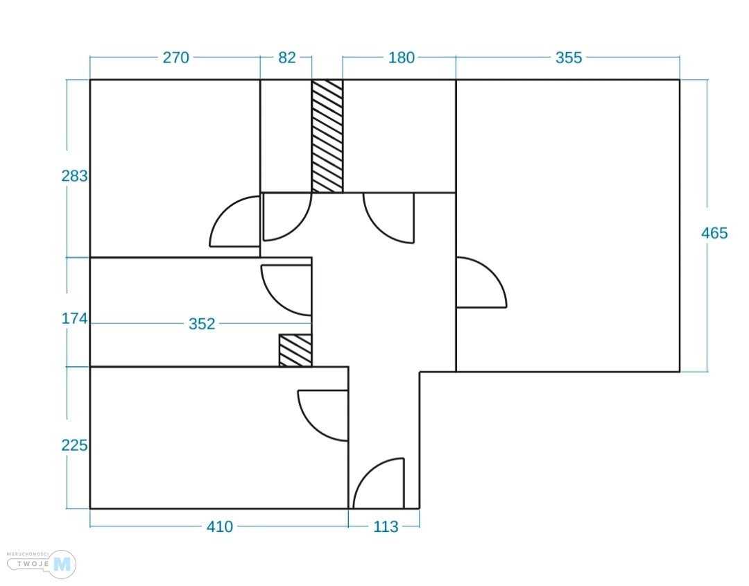 -trzy oddzielne pokoje,