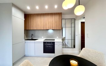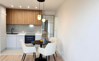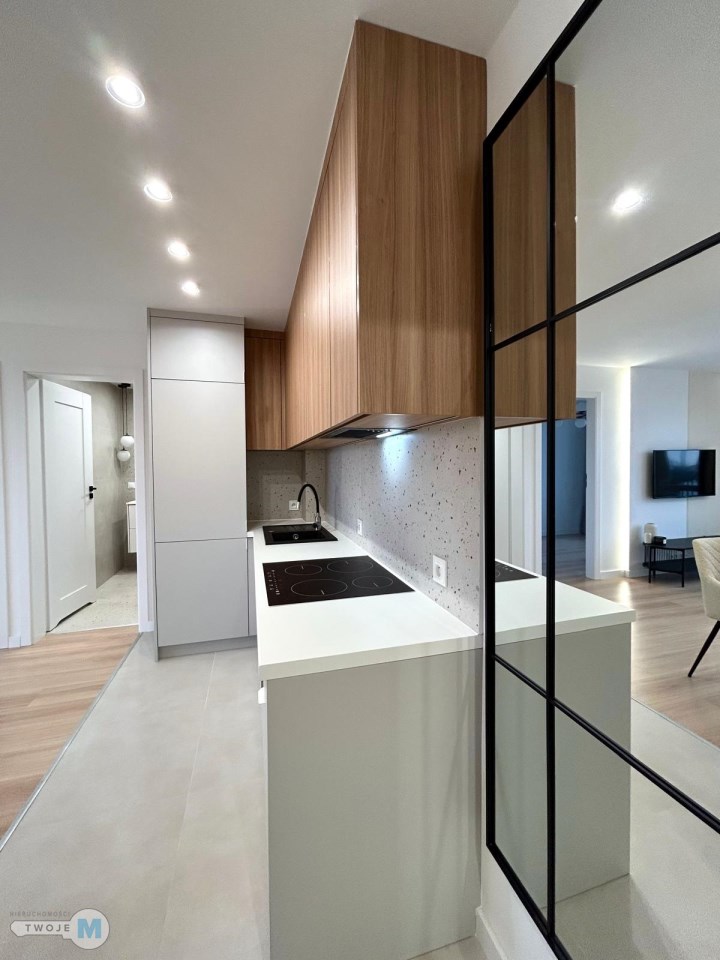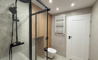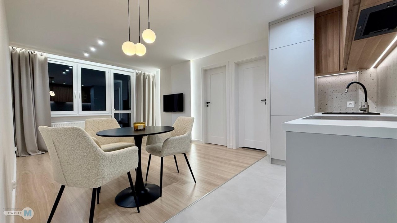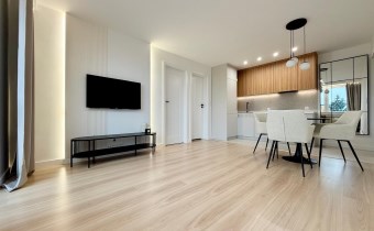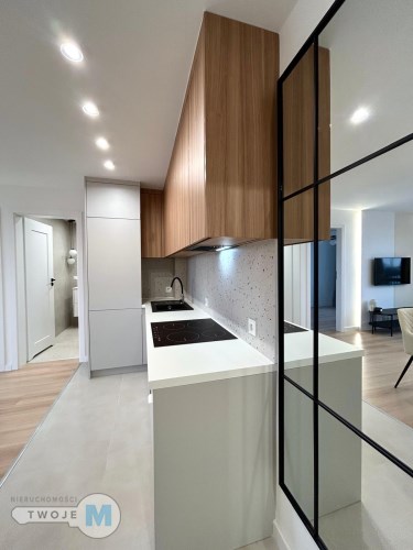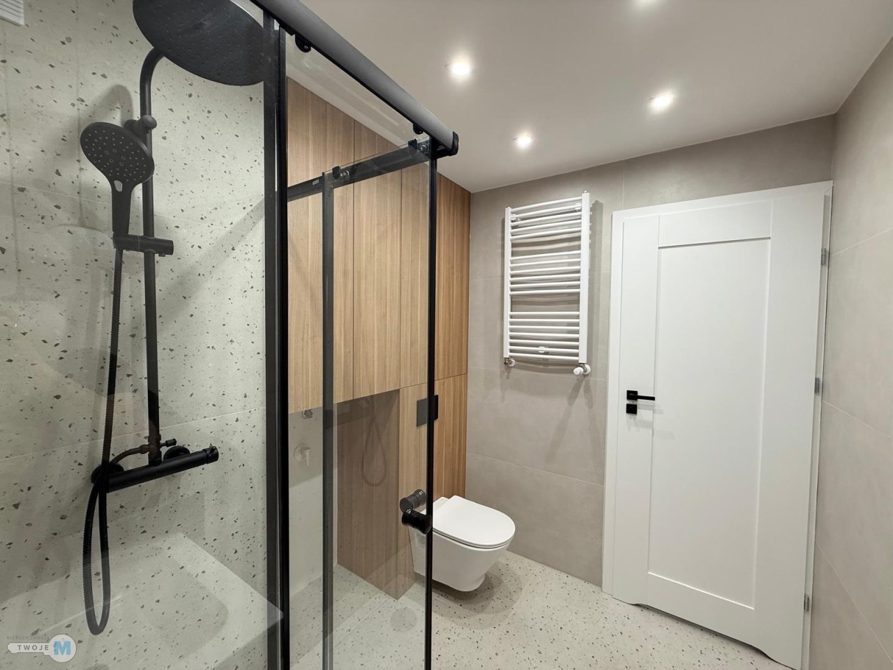 W mieszkaniu zostały położone wysokiej jakości gresy i panele podłogowe premium, zostały zamontowane drzwi DRE, zestaw podtynkowy i armatura ROCA, okna PCV, meble na wymiar wykonane przez stolarza z przemyślanym projektem, zabudowa łazienkowa z półkami i ukrytym bojlerem elektrycznym 80 i sterowanym Wi-Fi (zdalna regulacja temperatury i oszczędność energii), duża szafa w korytarzu, ścianka RTV z kanałem na przewody, listwy LED i sufity podwieszane tworzące nastrojowy klimat.
