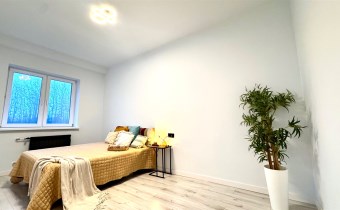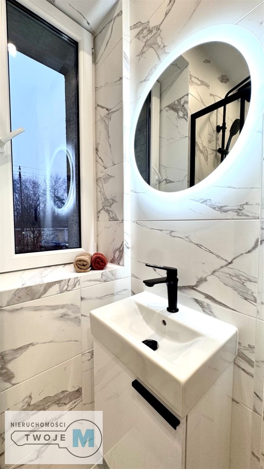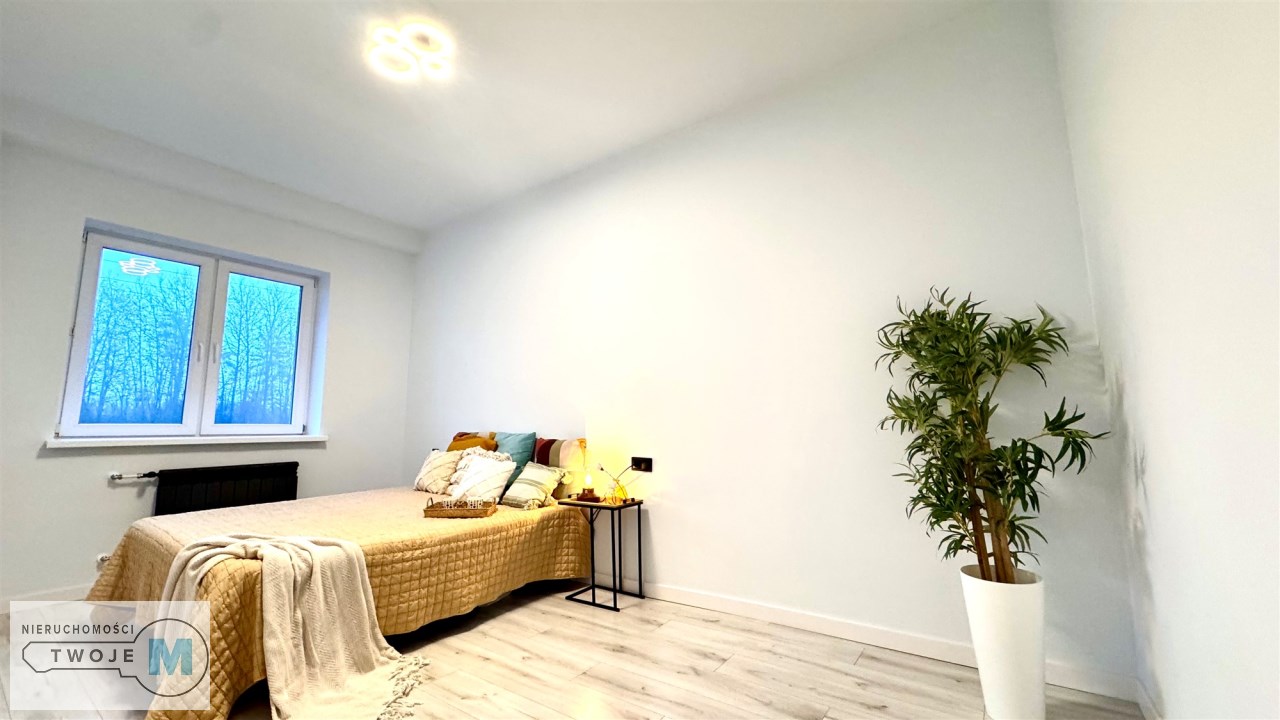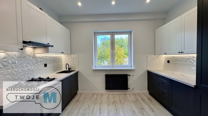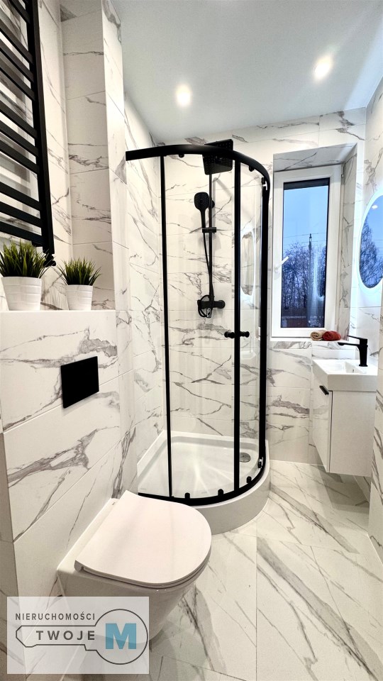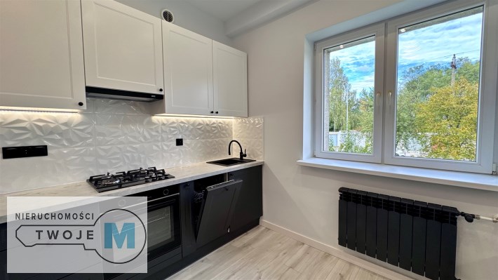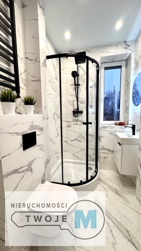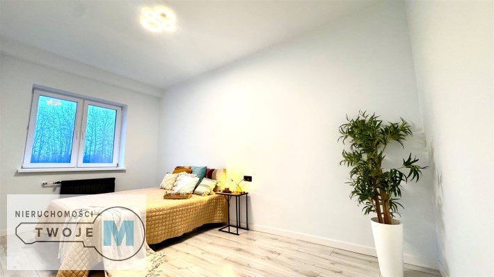 Mieszkanie po generalnym remoncie. Nowoczesny design, wysokiej jakości wykończenie. Nowoczesne oświetlenie LED (ścienne i sufitowe). W łazience zamontowano kabinę prysznicową oraz ogrzewanie podłogowe. Dużym atutem jest okno w łazience, które daje dużo światła dziennego. W kuchni został zainstalowany wysokiej klasy sprzęt AGD firmy BEKO tj. płyta gazowa, piekarnik, zmywarka. W zabudowie meblowej pozostawiono miejsce na pralkę oraz lodówkę. Na ścianie telewizyjnej w salonie została położona ozdobna biała cegła oraz został wykonany tunel na kable telewizyjne. W jednej z sypialni miejsce na dużą szafę na wymiar.