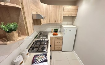 Mieszkanie składa się z dwóch niezależnych, ustawnych pokoi, co zapewnia komfort i prywatność. Oddzielna, ciemna kuchnia daje możliwość zachowania klasycznego układu, ale istnieje także opcja jej otwarcia i stworzenia nowoczesnego salonu z aneksem kuchennym – według własnych potrzeb i preferencji. Dodatkowo w mieszkaniu znajduje się łazienka oraz przestronny przedpokój z miejscem do przechowywania.