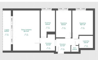 - duży salon z wyjściem na balkon typu loggia