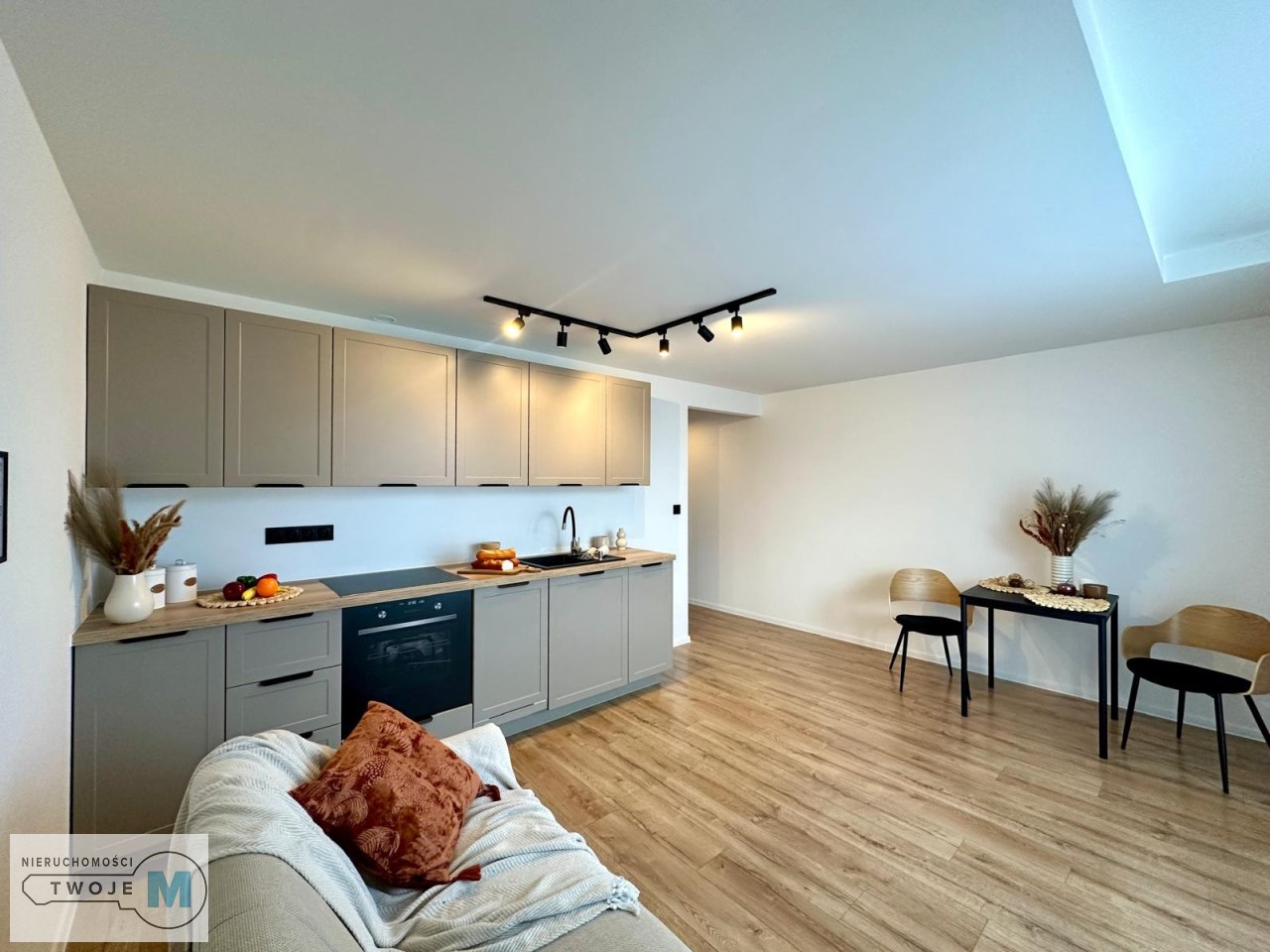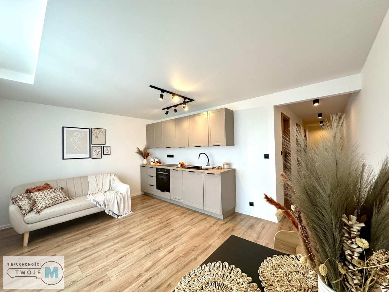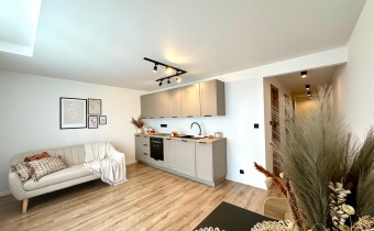 • Salon z aneksem kuchennym – jasna, otwarta przestrzeń z dostępem do balkonu