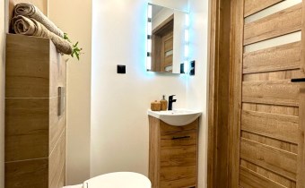 • Łazienka z WC – nowoczesna, z kabiną prysznicową
