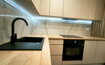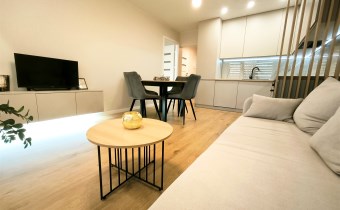 - duży pokój z aneksem kuchennym oraz wyjściem na balkon