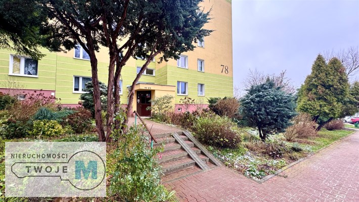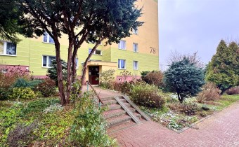 Blok ocieplony, po termomodernizacji. Wokół budynku bardzo zadbany zielony teren, z wieloma nasadzeniami.