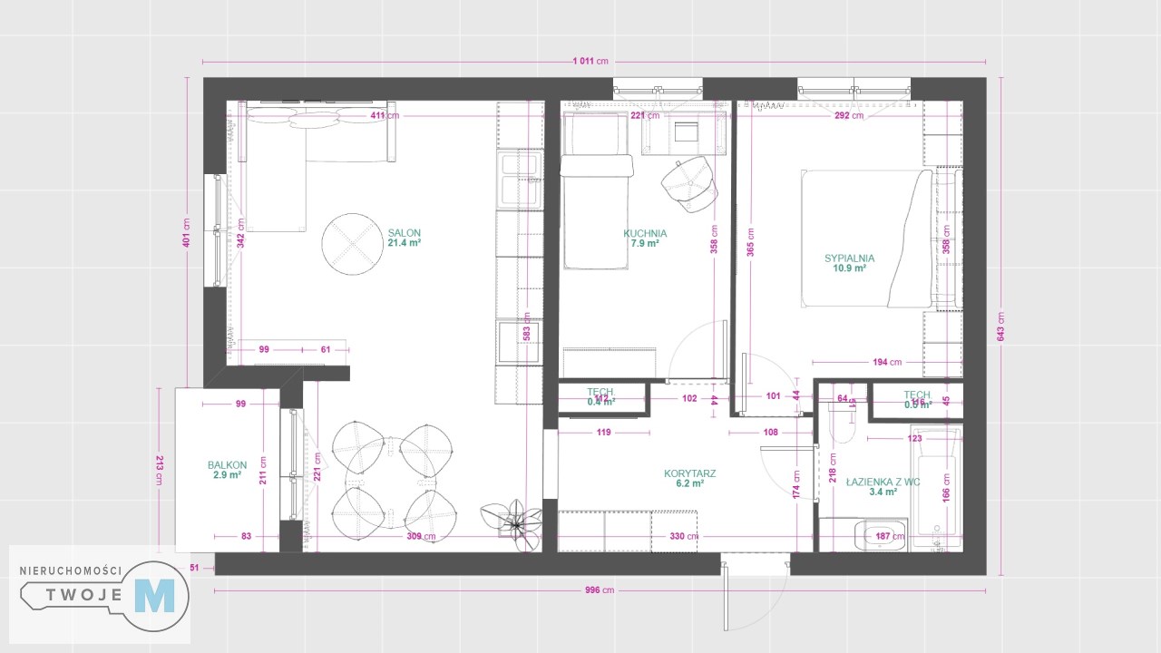 mieszkania 2-pokojowego z osobną, widną kuchnią