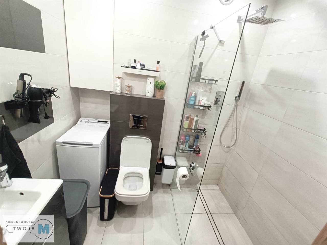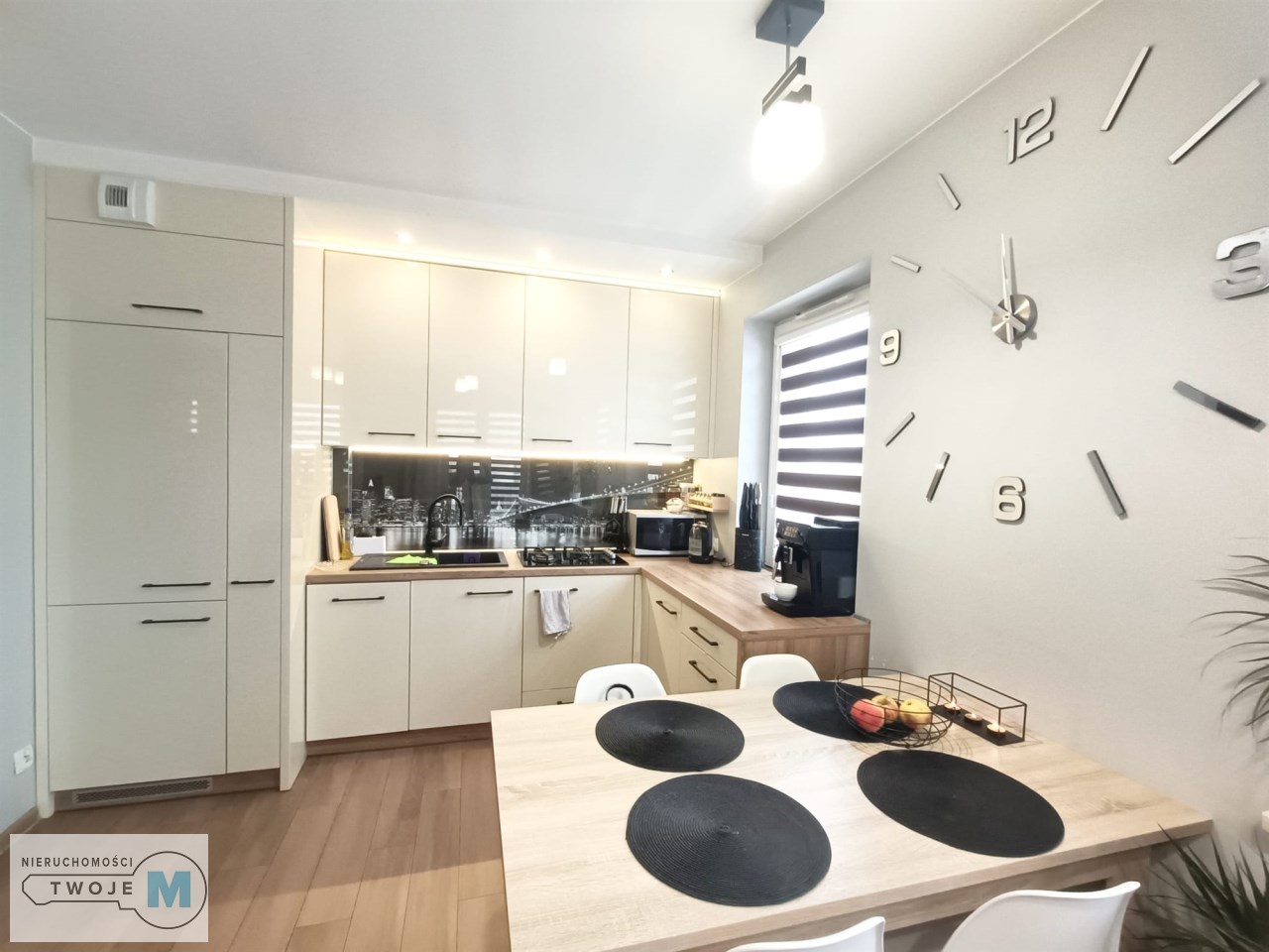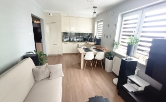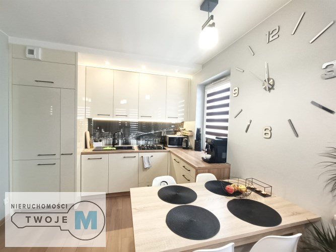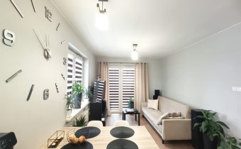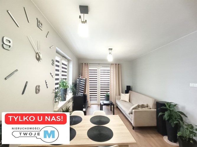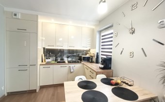 Mieszkanie gotowe do zamieszkania w pełni umeblowane oraz wyposażone. W kuchni meble wykonane na wymiar (wyposażona w sprzęty m.in. zmywarka, lodówka), w salonie rozkładana sofa, szafka RTV, oraz stół z krzesłami. W sypialni dwie szafy oraz łóżko.