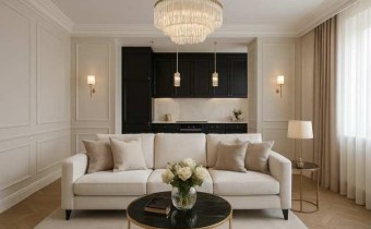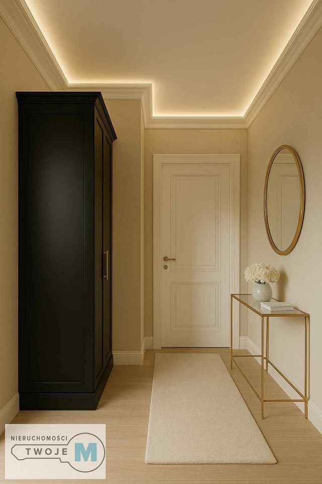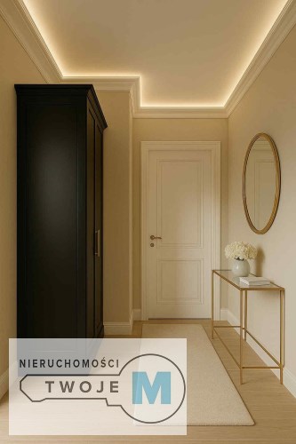 W mieszkaniu znajduje się, duży funkcjonalny salon z aneksem kuchennym, w którym zainstalowano sprzęty AGD znanych marek tj: okap, piekarnik elektryczny, płytę indukcyjną oraz zmywarkę. Łazienka w mieszkaniu została zaprojektowana w nowoczesnym stylu. Zamontowano w niej wysokiej klasy armaturę oraz energooszczędne i modne oświetlenie LED. W przedpokoju znajdują się szafa oraz lustro dekoracyjne. Do wykończenia mieszkania zostały użyte wysokogatunkowe materiały, świetnej jakości farby w jasnych kolorach, panele o wysokiej klasie oraz energooszczędne oświetlenie.