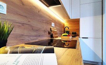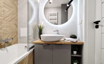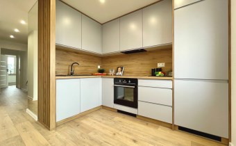 - wykonanie zabudowy meblowej na wymiar przez stolarza w kuchni, łazience oraz przedpokoju