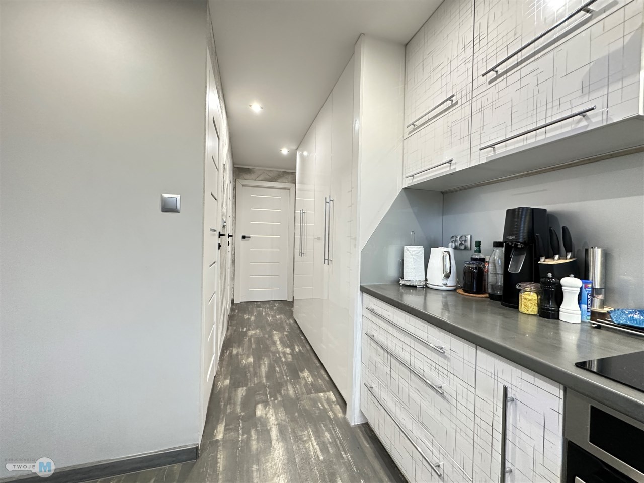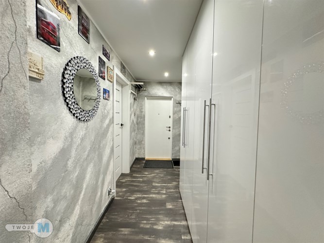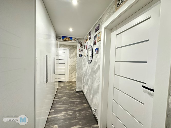 - duży korytarz z szafą z którego mamy oddzielne wejścia do wszystkich pomieszczeń.