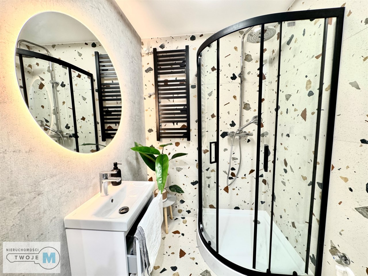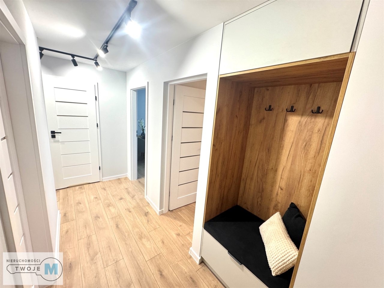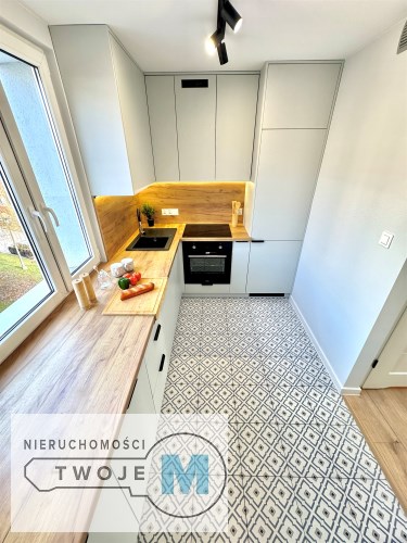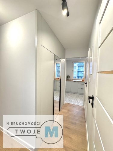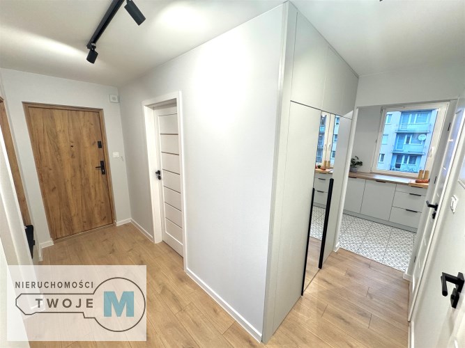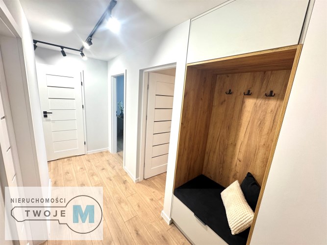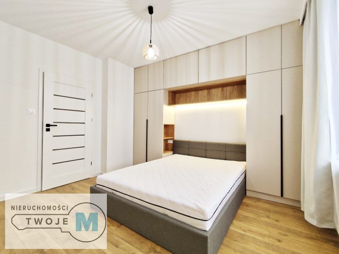 W mieszkaniu znajduje się duża, funkcjonalna, widna kuchnia, w której została wykonana wysokiej klasy zabudowa meblowa przez stolarza. Zainstalowano wszelkie niezbędne sprzęty AGD znanych marek tj: okap, piekarnik elektryczny, płyta indukcyjna, lodówko-zamrażarka oraz zmywarka. Łazienki w mieszkaniu zostały zaprojektowane w nowoczesnym stylu. Zainstalowano w niej wysokiej klasy armaturę oraz energooszczędne i modne oświetlenie LED, a także wstawiono pralkę. W przedpokoju znajduje się wysokiej klasy szafa z lustrem w zabudowie wykonana przez stolarza na wymiar. Do wykończenia mieszkania zostały użyte wysokogatunkowe materiały w nowoczesnym dizajnie: świetnej jakości farby w jasnych kolorach, panele o wysokiej klasie oraz energooszczędne i modne oświetlenie. Zabudowa sypialni widoczna na zdjęciach poglądowych, jest dostępna za dodatkową dopłatą.