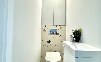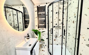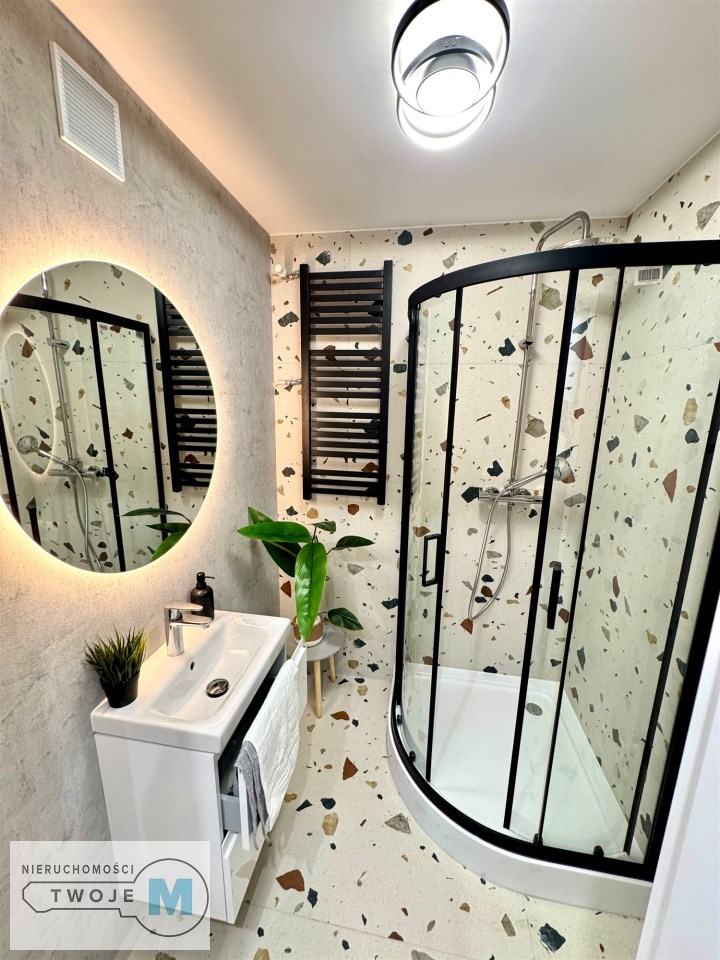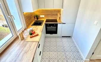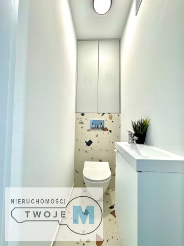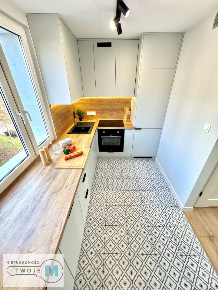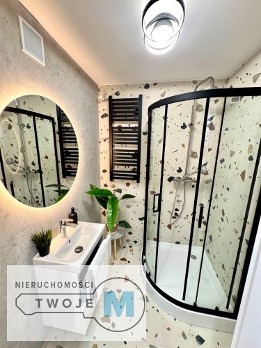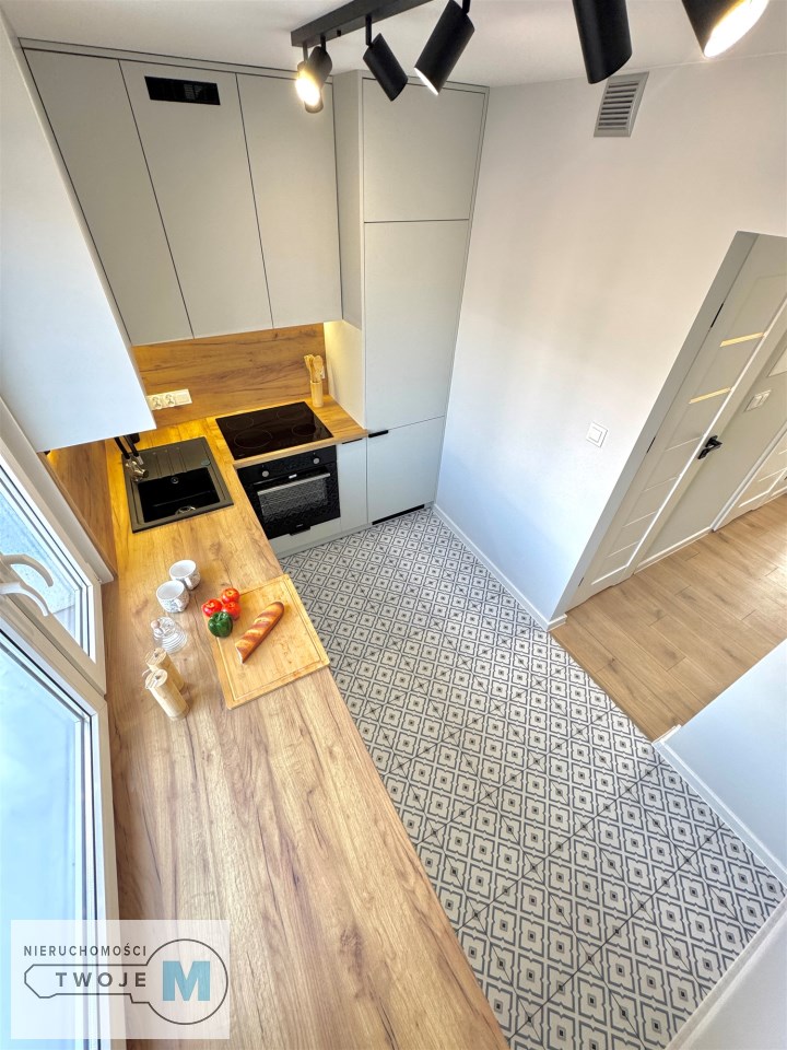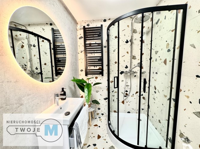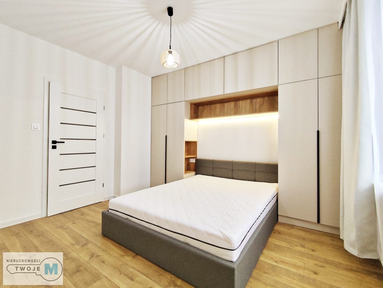 W mieszkaniu znajduje się duża, funkcjonalna, widna kuchnia, w której została wykonana wysokiej klasy zabudowa meblowa przez stolarza. Zainstalowano wszelkie niezbędne sprzęty AGD znanych marek tj: okap, piekarnik elektryczny, płyta indukcyjna, lodówko-zamrażarka oraz zmywarka. Łazienki w mieszkaniu zostały zaprojektowane w nowoczesnym stylu. Zainstalowano w niej wysokiej klasy armaturę oraz energooszczędne i modne oświetlenie LED, a także wstawiono pralkę. W przedpokoju znajduje się wysokiej klasy szafa z lustrem w zabudowie wykonana przez stolarza na wymiar. Do wykończenia mieszkania zostały użyte wysokogatunkowe materiały w nowoczesnym dizajnie: świetnej jakości farby w jasnych kolorach, panele o wysokiej klasie oraz energooszczędne i modne oświetlenie. Zabudowa sypialni widoczna na zdjęciach poglądowych, jest dostępna za dodatkową dopłatą.