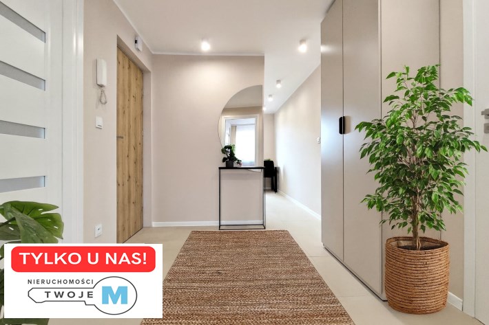 W mieszkaniu znajduje się duża, funkcjonalna, widna kuchnia, w której zainstalowano sprzęty AGD znanych marek tj.: lodówkę, piekarnik elektryczny, płytę indukcyjną, okap oraz zmywarkę. Łazienka w mieszkaniu została zaprojektowana w nowoczesnym stylu. Zamontowano w niej wysokiej klasy armaturę oraz energooszczędne i modne oświetlenie LED. W przedpokoju znajdują się szafa oraz lustro dekoracyjne. Do wykończenia mieszkania zostały użyte wysokogatunkowe materiały, świetnej jakości farby w jasnych kolorach, panele o wysokiej klasie oraz energooszczędne oświetlenie.