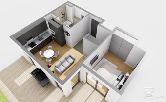Mieszkanie zostało zaprojektowane z myślą o wygodzie i funkcjonalności. Składa się z: