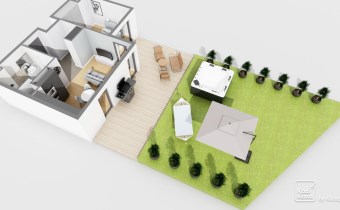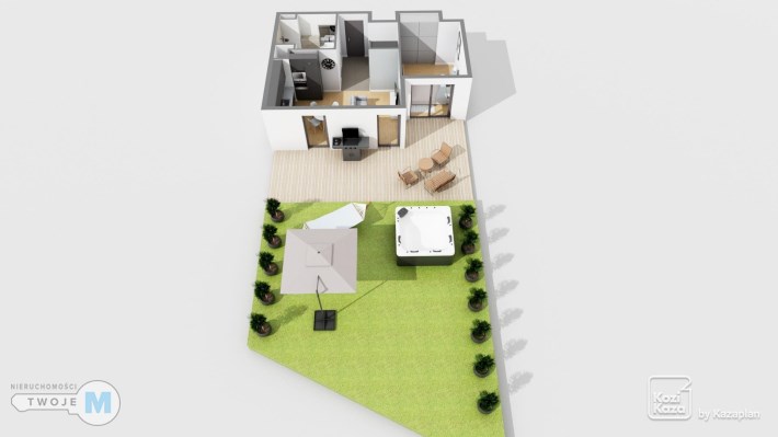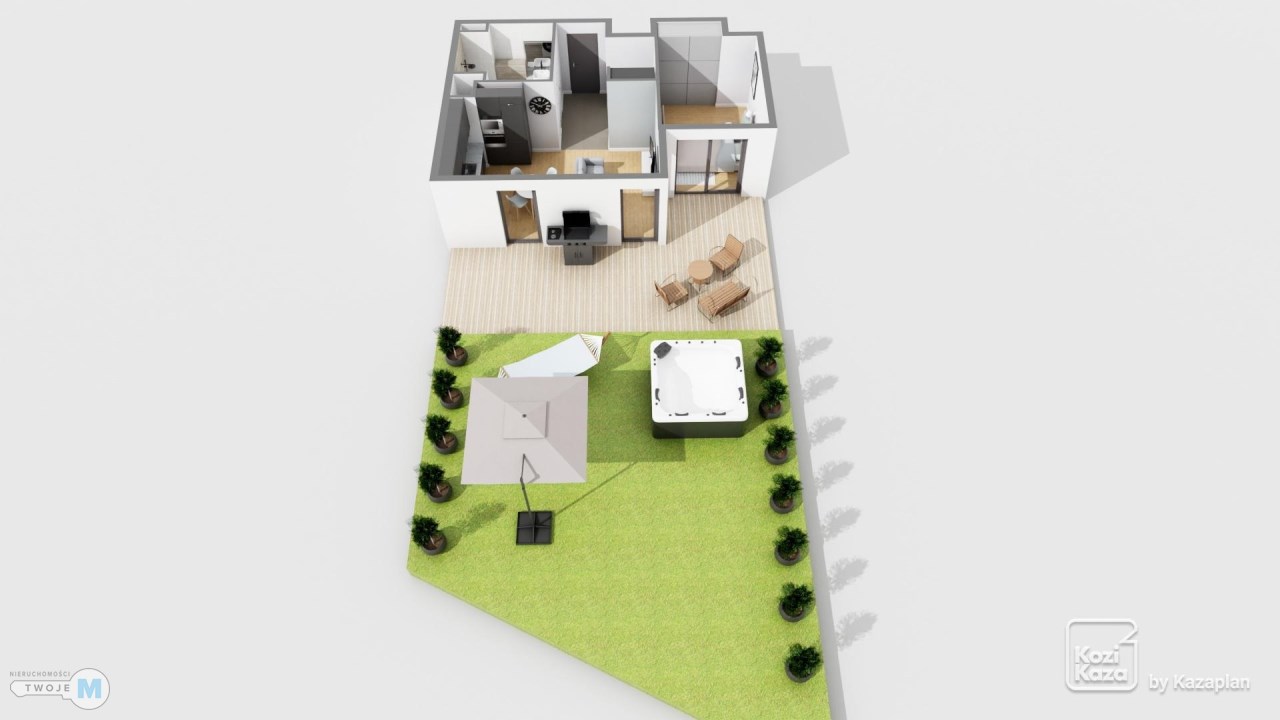 To propozycja dla osób ceniących komfort, prywatność oraz ponadstandardową przestrzeń na świeżym powietrzu.