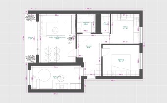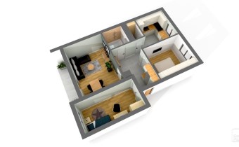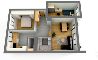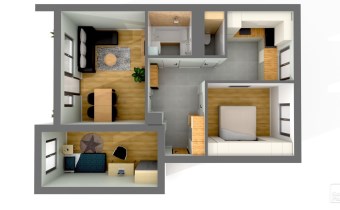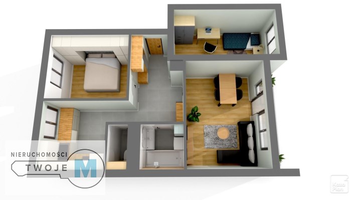 - 2 ustawne pokoje / sypialnie – 10.5 m2 , 10.7 m2