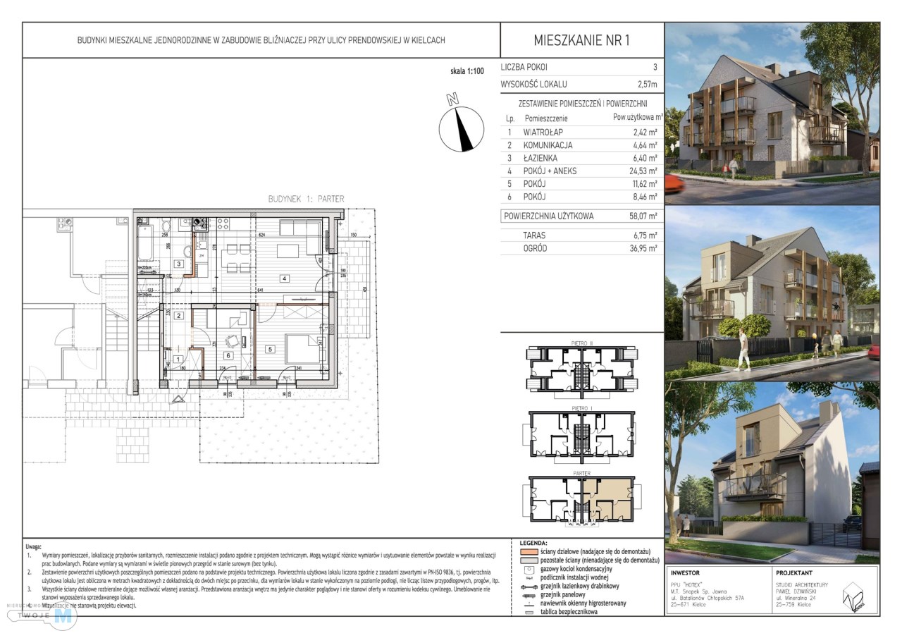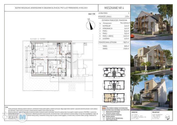 Na sprzedaż 2 komfortowe mieszkania deweloperskie o powierzchni 58,07 m², położone na parterze w kameralnej inwestycji przy ul. Prendowskiej w Kielcach.