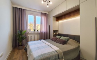 Mieszkanie po generalnym remoncie. Nowoczesny design, wysokiej jakości wykończenie. W mieszkaniu zostały zastosowane nowoczesne rozwiązania. Zainstalowany wszelki, niezbędny sprzęt AGD. Zabudowa meblowa w kuchnia, łazience i przedpokoju oraz sypialni, wykonana przez sprawdzonego stolarza.