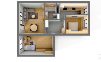 - wykonanie zabudowy meblowej na wymiar przez stolarza w kuchni oraz łazience, WC, szafa w przedpokoju, zabudowa meblowa sypialni
