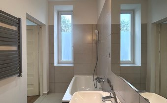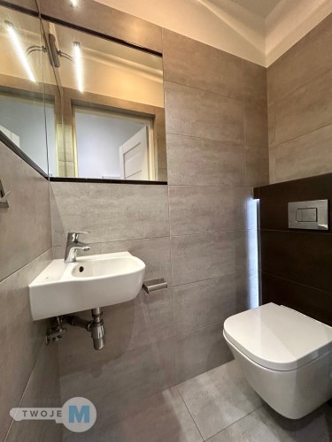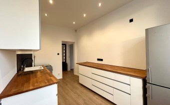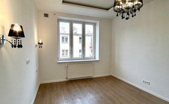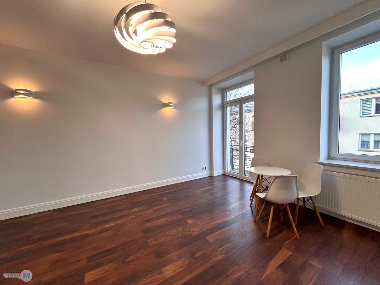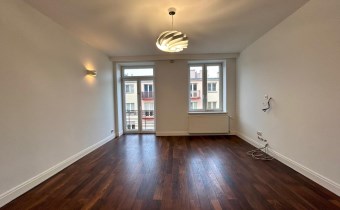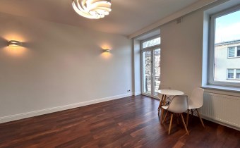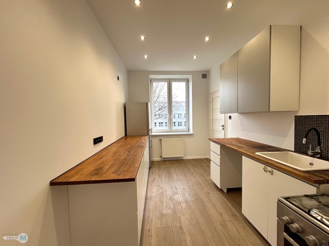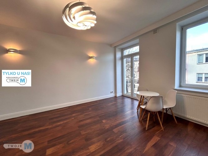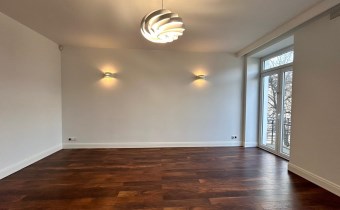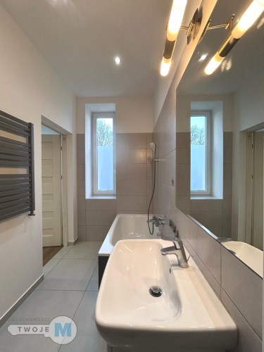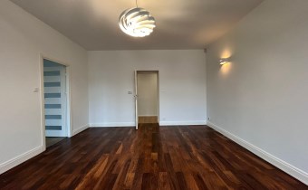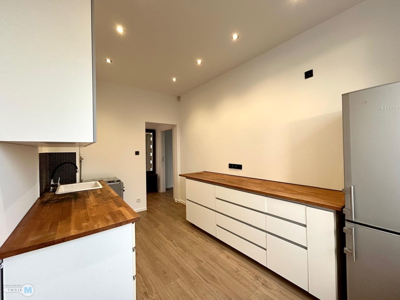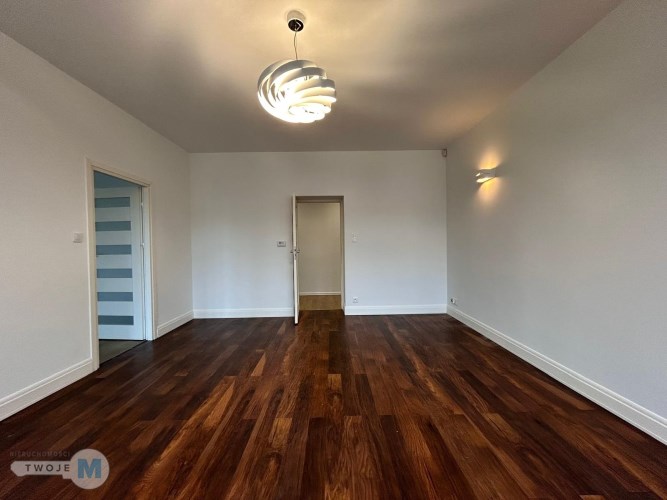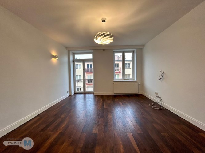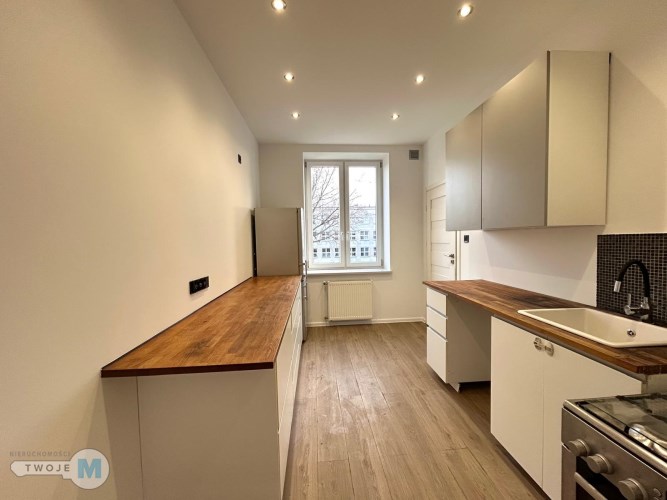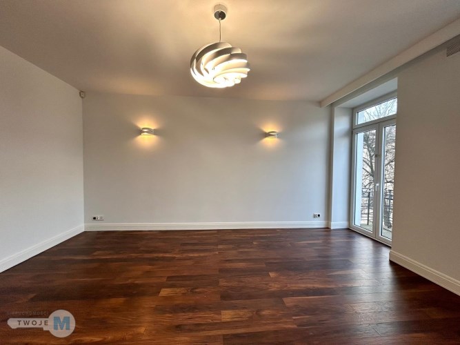 Do dyspozycji jest również osobna duża kuchnia z oknem, łazienka, wc oraz korytarz, który stanowi wygodny łącznik między wszystkimi pomieszczeniami, zapewniając płynną komunikację w całym mieszkaniu. W lokalu wyraźnie odczuwalna jest swoboda i otwartość przestrzeni, a wysokie sufity i duże okna tworzą wyjątkowy, ponadczasowy charakter wnętrza.