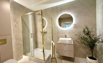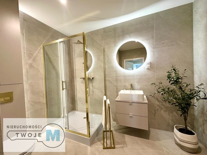 - łazienka z WC, nowoczesna, z kabiną prysznicową, wykończone w wysokim standardzie
