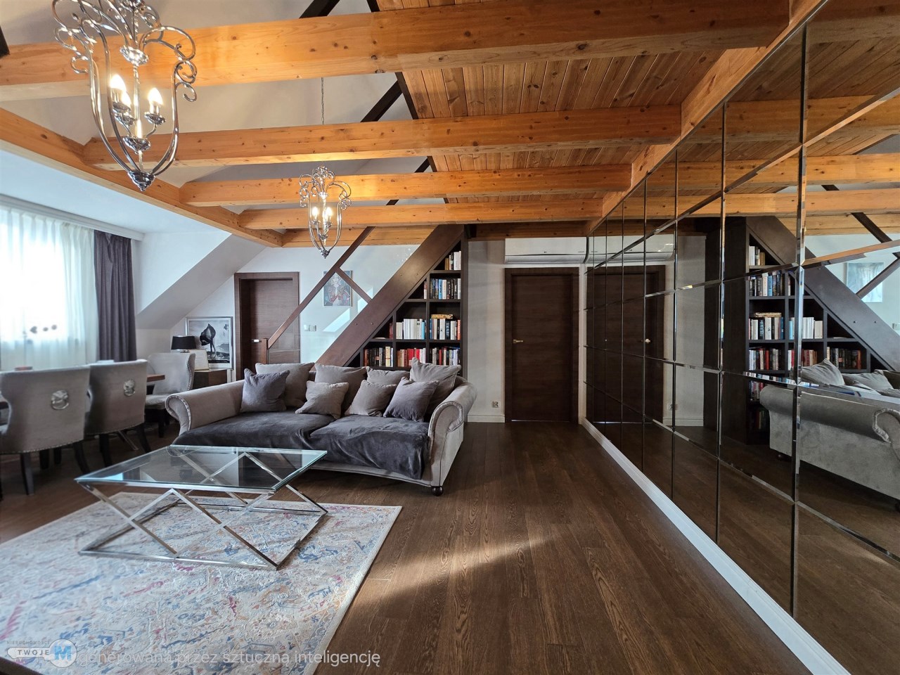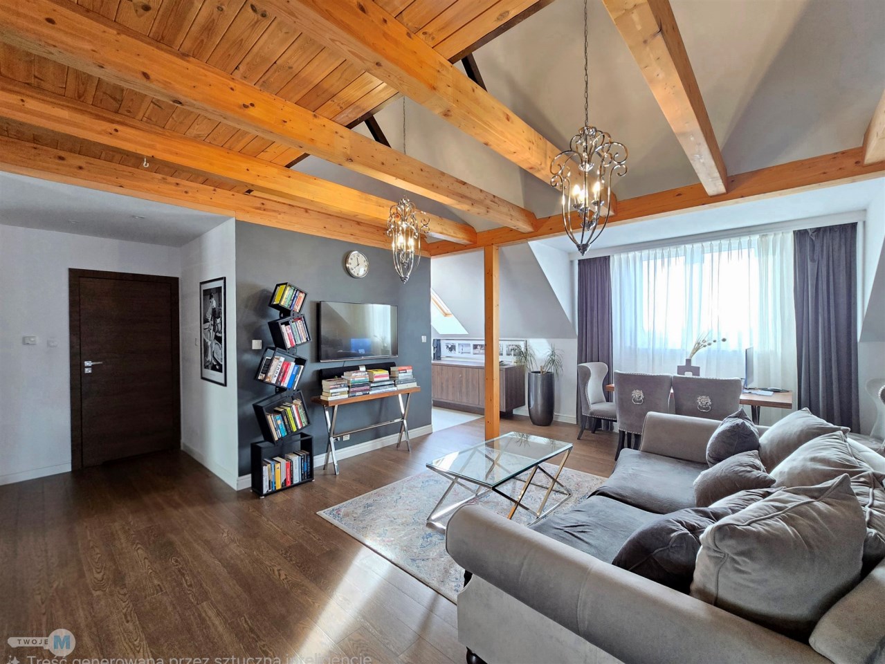 - przestronny, pięknie doświetlony salon, urządzony w eleganckim, spójnym stylu – miejsce, w którym przyjemnie odpoczywa