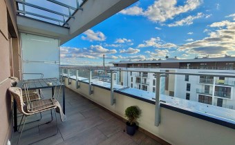 Posiada taras i miejsce parkingowe w garażu podziemnym.