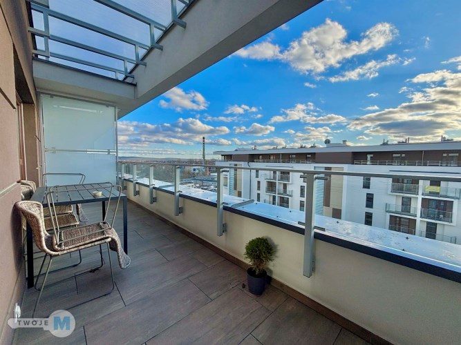 Oferujemy Państwu na wynajem, dostępną od zaraz, kawalerkę z dużym tarasem.