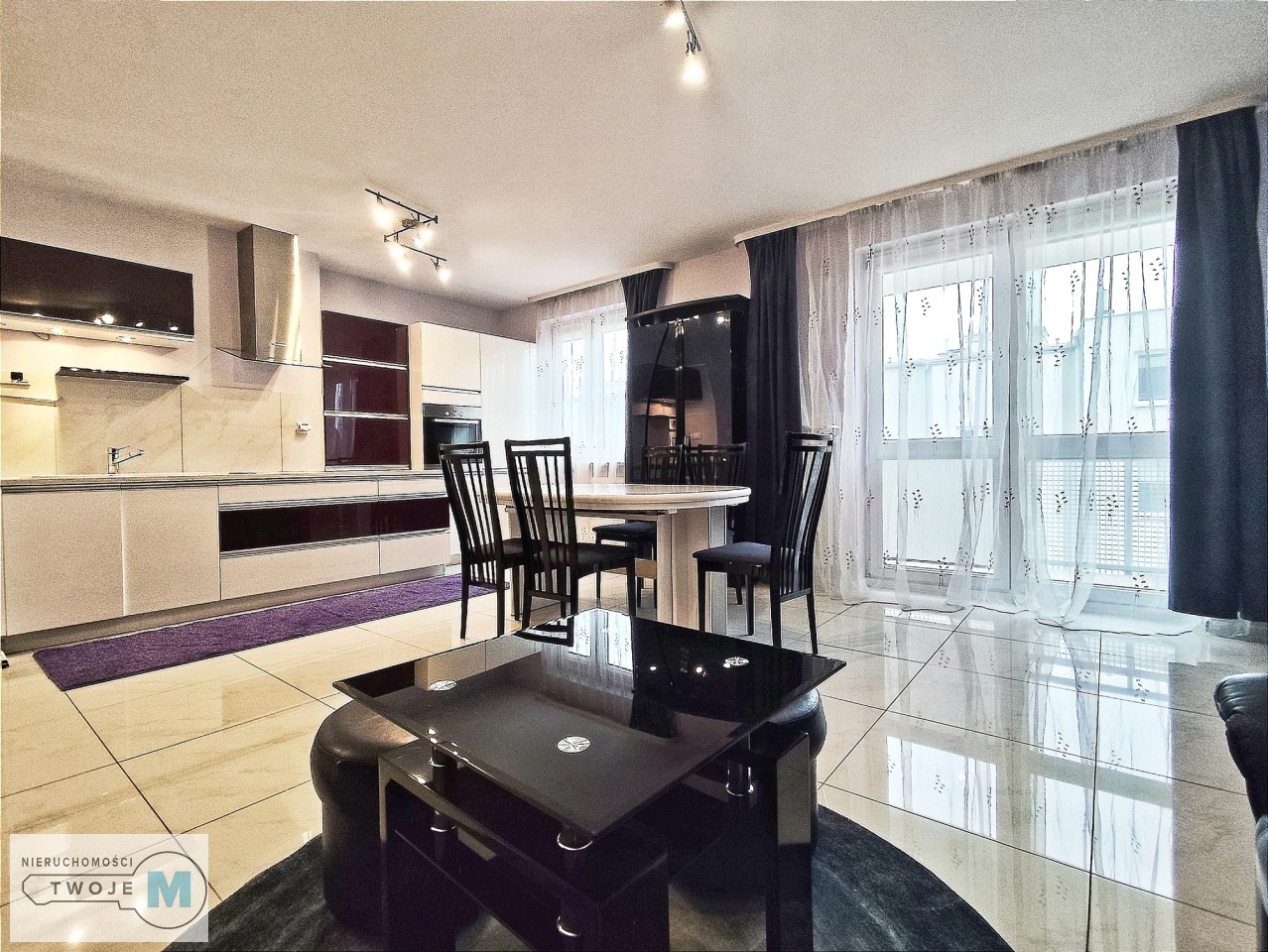 - bardzo dużego salonu z kuchnią, jadalnią i wyjściem na balkon