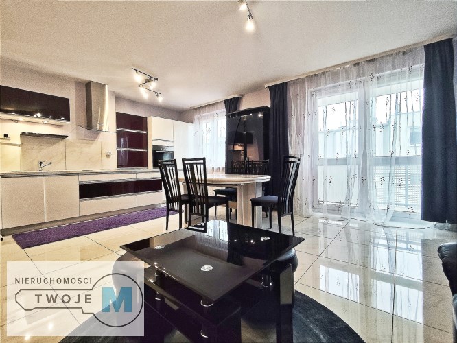 Nieruchomość urządzona jest w nowoczesnym stylu, w salonie znajduje się bardzo wygodny i duży komplet wypoczynkowy. Kuchnia wyposażona została we wszystkie niezbędne sprzęty: lodówka, piekarnik elektryczny, płyta indukcyjna, zmywarka oraz okap. W pomieszczeniu jest również duży stół z krzesłami. W sypialni znajdują się: duże łózko, rozkładana kanapa i pojemna szafa.